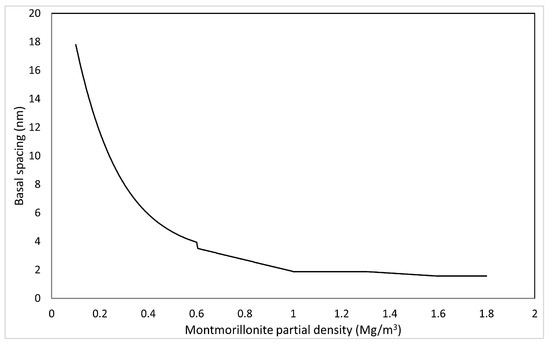 Figure 9 shows the correlation between basal spacing and montmorillonite partial density calculated based on Equation (51).