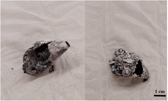 Figure 10 depicts the conical section of the reactor after magnetite plasma treatment. It can be observed that the cone’s base is made of a metallic substance from which iron metal may be formed, as well as iron oxide, which covers the whole back of the cone.
