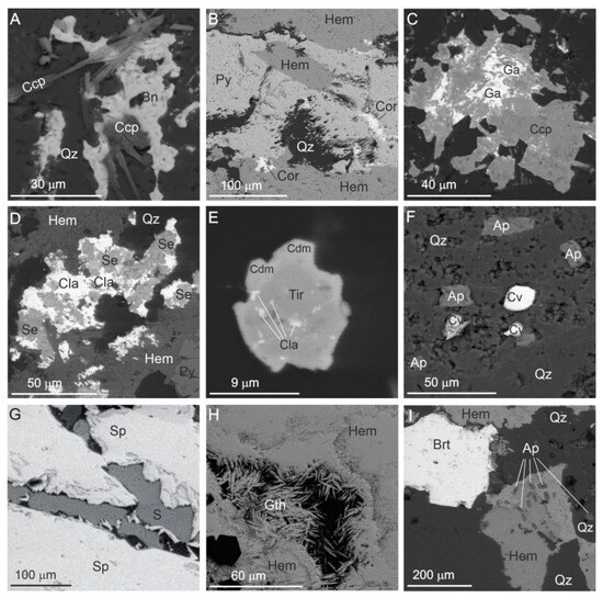 Table 2). Sulfide minerals are dominated by pyrite, chalcopyrite, and sphalerite with lesser amounts of galena, bornite, and covellite. Of note is the finding of rare selenides, such as clausthalite, tyrrellite, and cadmoselite. The appearance of native selenium and sulfur is obviously related to supergene alteration of clausthalite and sphalerite, respectively, while corkite is probably originated by alteration of polysulfide aggregates.