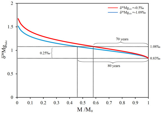 Otherwise, when δ26Mglake remains constant, it becomes a steady-state model, then Equation (5) can be simplified as follows:
