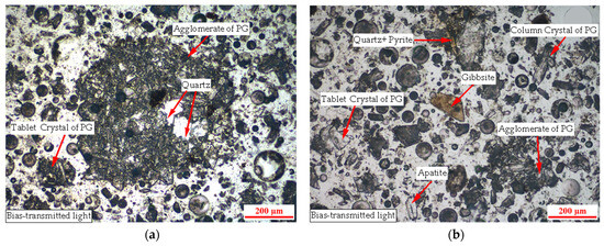 Mineral phase analysis is usually performed through microscopic observation and XRD analysis. Herein, the mineral phase of PG is qualitatively analyzed with a polarized microscope. The analysis results are presented in Figure 4.