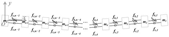 According to Figure 3, the mass of the (i − 1)th, ith, and (i + 1)th blocks are denoted as mi−1, mi, and mi+1, respectively. These blocks are connected by a nonlinear spring and a damper.