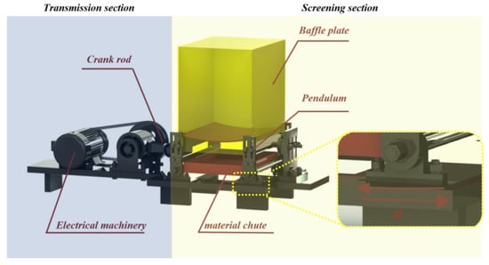 Coal is a kind of significant fossil energy, accounting for about 40% [1,2,3] of the global fuel used to generate electricity. However, harmful gases are emitted during the process of burning coal, so raw coal needs to be processed before industrial application in order to improve the cleanliness of coal and reduce environmental pollution caused by sulfur dioxide and nitrogen oxides, etc. Currently, mineral processing is considered as an economical and effective way to improve the cleanliness of raw coal [4,5,6,7,8,9]. Screening is an important component of mineral processing [10]. According to statistics, screening equipment accounts for 25–33% [11] of the total number of equipment in modern coal processing plants. Therefore, research on screening equipment is of great significance to industrial production [12,13,14,15,16].