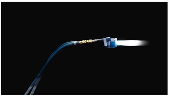 Table 3 indicates that the current remains constant throughout the experiment; however, voltage changes until it reaches a level suitable for the formation of a stable plasma jet. The fluctuation of the voltage can be explained by the relationship between electrical resistance and power dissipation, i.e., the increase in electrical resistance is due to the rise in temperature and density generated by the current [20]. Figure 7 depicts the morphology of the plasma arc under the experiment’s stable conditions.