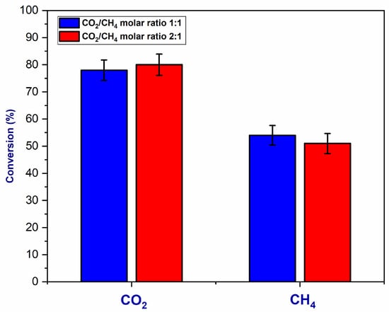 3.2.2. Power Variation of CO2/CH4 Molar Ratio