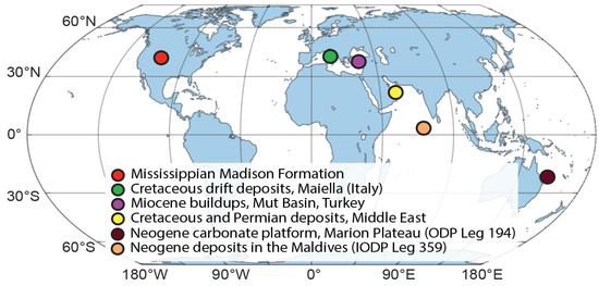 - Weger, R.J.; Giddens, E.; MacKenzie, G.; Eberli, G.P. Uniform Petrophysical Properties of Carbonate Contourite Drifts. In Proceedings of the 36th International Meeting of Sedimentology, Dubrovnik, Croatia, 12–16 June 2023; Vlahović, I., Matešić, D., Eds.; Croatian Geological Society: Dubrovnik, Croatia, 2023. [Google Scholar]
