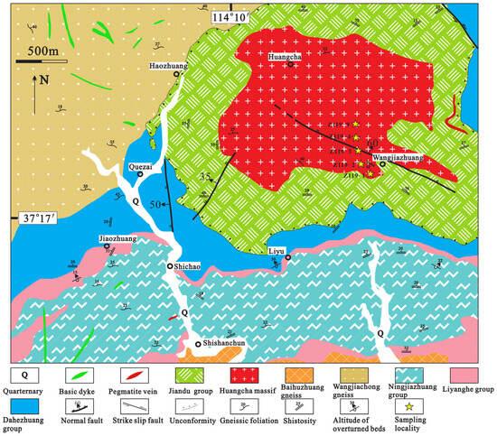 Geological sketch map of the Huangcha Pluton in the Zanhuang Complex.