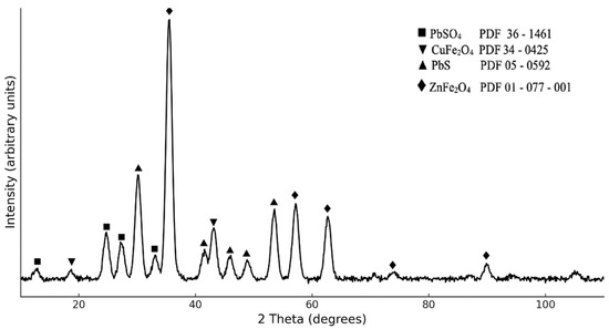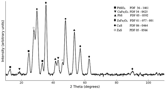 Copper flue dust appeared as a fine, grey powder (Figure 1). The XRD pattern of the initial CFD sample is presented in Figure 2.