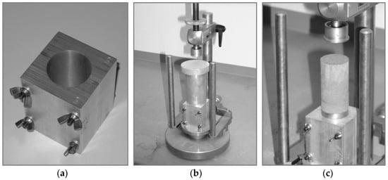33]. Lime-treated samples were prepared by hand-mixing the soil with a fixed amount of quicklime powder, precisely 10% CaO and distilled water (w/c = 20%). Samples were tested at different curing times, namely 0 (raw, i.e., not-treated), 7, 14, days and 105 days. The soil-lime–water mixture was then “dynamically” compacted in thin layers inside special aluminium cylindrical moulds (internal dia. = 38.1 mm) made of two split parts and boulted together during sample preparation (see