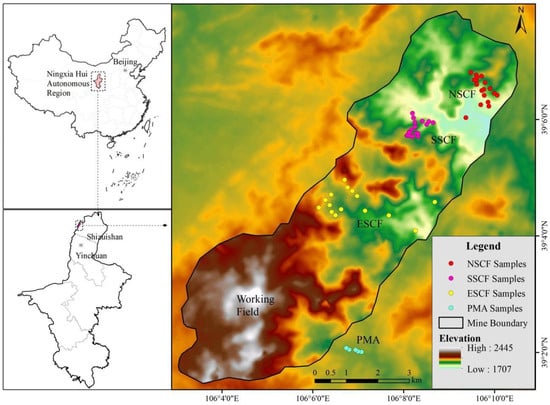 - Zhai, X.; Wu, S.; Wang, K. Environment influences and extinguish technology of spontaneous combustion of coal gangue heap of Baijigou coal mine in China. Int. Conf. Energy Environ. Res. 2017, 163, 66–72. [Google Scholar] [CrossRef]