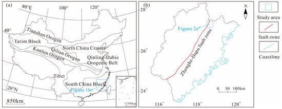 - Xing, G.F.; Lu, Q.D.; Chen, R.; Zhang, Z.Y.; Nie, T.C.; Li, L.M.; Huang, J.L.; Lin, M. Study on the end time limit of the Late Mesozoic tectonic regime transition in South China and comparison with the Yanshan area in North China. Acta Geol. Sin. 2008, 4, 451–463, (In Chinese with English Abstract). [Google Scholar]