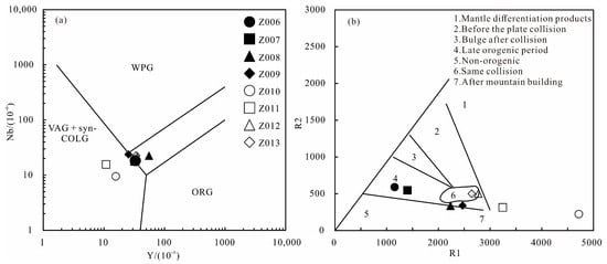 - Wu, F.Y.; Li, X.H.; Yang, J.H.; Zheng, Y.F. Some problems in the study of granite genesis. Acta Petrol. Sin. 2007, 6, 1217–1238, (In Chinese with English Abstract). [Google Scholar]