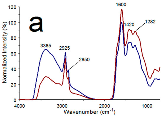 Coals consist of complex mixtures that are produced by the long-term effects of heat and pressure on organic matter [53]. More than 200 different minerals have been identified in coals [54]. These impurities impact coal properties and can affect energy content. Coals are “ranked” based on carbon content and the amount of heat energy they yield. Lignite coals are the lowest rank of coal because they have a low carbon content and yield low heat energies. Bituminous coals have undergone a greater transformation to carbon than lignite and are categorized as medium-rank. The infrared spectra of lignite and bituminous coals contain infrared spectrum bands associated with organic functionalities and water.