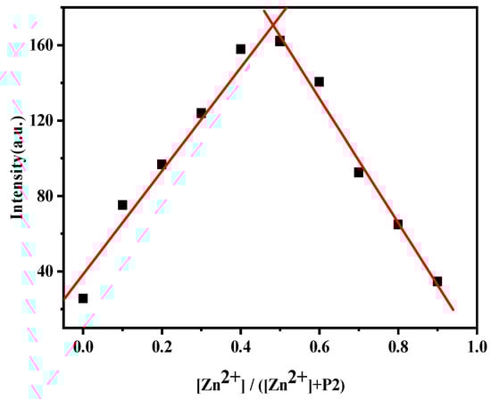 Job’s plot curve of P2 with Zn2+.