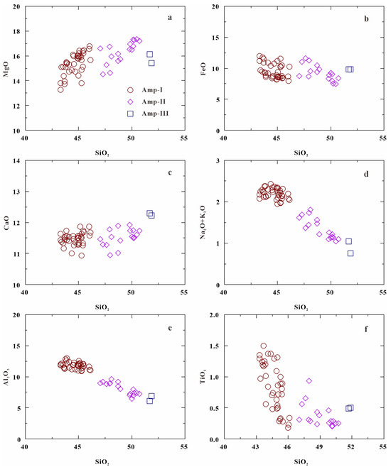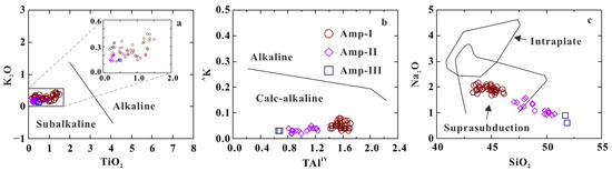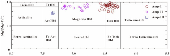 - Coltorti, M.; Bonadiman, C.; Faccini, B.; Grégoire, M.; O’Reilly, S.Y.; Powell, W.G. Amphiboles from suprasubduction and intraplate lithospheric mantle. Lithos 2007, 99, 68–84. [Google Scholar] [CrossRef]