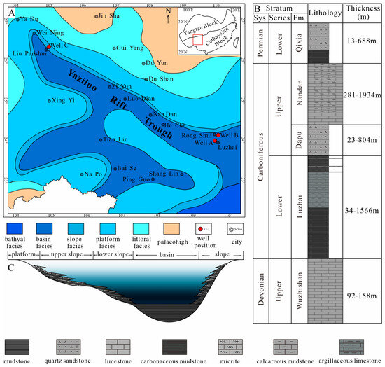 Chen X, Xu Q, Qin Y, Chen R, Wang Y, Shi D, Bai J, Yuan K, Cen W, Li F, et al. Effect of Paleoenvironmental Conditions on the Distribution of Lower Carboniferous Shale in Yaziluo Rift Trough, South China: Insights from Major/Trace Elements and Shale Composition. Minerals. 2024; 14(7):659. https://doi.org/10.3390/min14070659