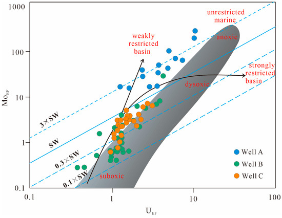 - Algeo, T.J.; Tribovillard, N. Environmental analysis of paleoceanographic systems based on molybdenum-uranium covariation. Chem. Geol. 2009, 268, 211–225. [Google Scholar] [CrossRef]