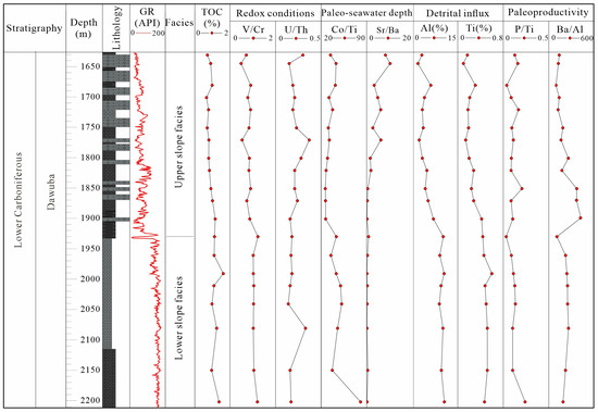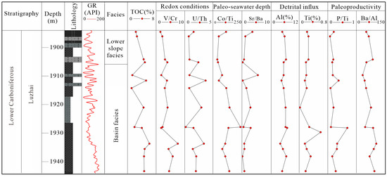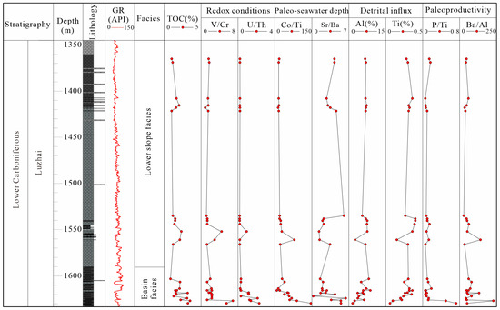 - Tribovillard, N.; Algeo, T.J.; Lyons, T.; Riboulleau, A. Trace metals as paleoredox and paleoproductivity proxies: An update. Chem. Geol. 2006, 232, 12–32. [Google Scholar] [CrossRef]