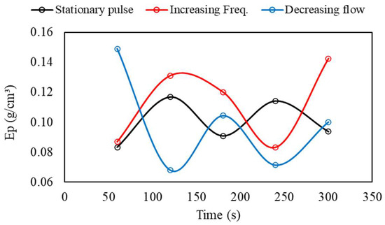 Comparison of Ep values over time (transient pulsation with increasing flow rate and decreasing frequency).