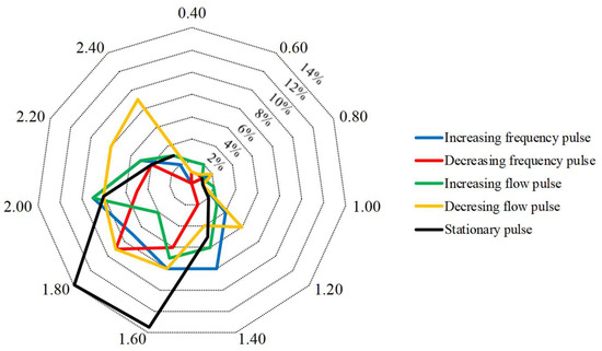 Partition indices for tests with transient pulsation—decreasing flow rate and increasing frequency.