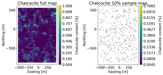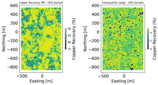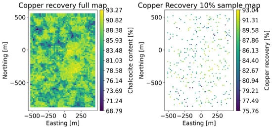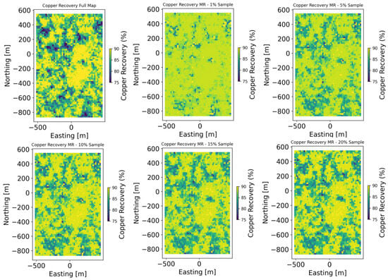 Figure 2 shows the copper recovery maps for the complete dataset on the left side and the corresponding map for the 10% sampling on the right side, respectively.