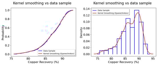 39] is used, given its good adaptability to any type of distribution and computational efficiency. In particular, kernel smoothing, a type of weighted moving average method, is applied for probability density estimation, that is, to estimate the probability density function of a random variable based on kernels as weights, where the term kernel in this context means a window function.