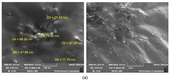 Scanning electron microscope (SEM) Vega 3, Tescan, Czech Republic equipped with SE and BSE detectors was used for observing the samples’ morphology at a voltage of 30 kV. The samples were coated with gold []. The test method was implemented according to JY/T 0584-2020.