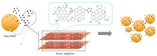 Mechanism of B@MMT interaction with resin and asphaltene.
