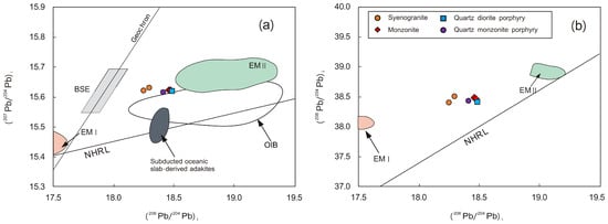 3.3. Whole-Rock Sr–Nd–Pb Isotopic Analyses