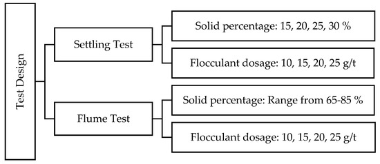 Figure 4. Test design with variation in solid percentage and flocculant dosage.