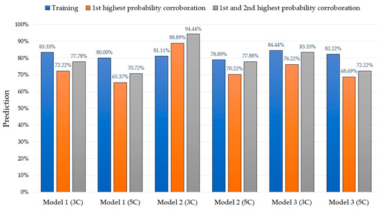 Figure 15. Models’ prediction corroboration considering the most likely flowability category.