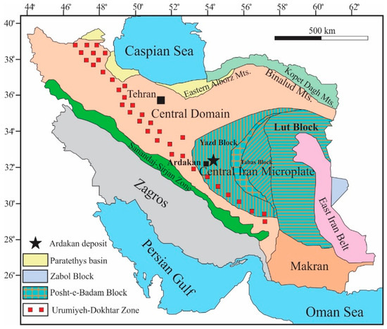 - Aghanabati, S.A. Geology of Iran; Geological Survey of Iran: Tehran, Iran, 2004; 586p. (In Persian) [Google Scholar]