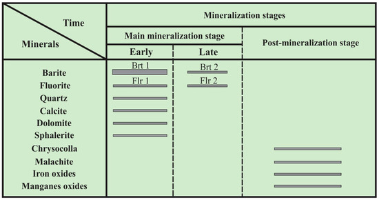 - Alaminia, Z.; Sharifi, M. Geological, geochemical and fluid inclusion studies on the evolution of barite mineralization in the Badroud area of Iran. Ore Geol. Rev. 2018, 92, 613–626. [Google Scholar] [CrossRef]