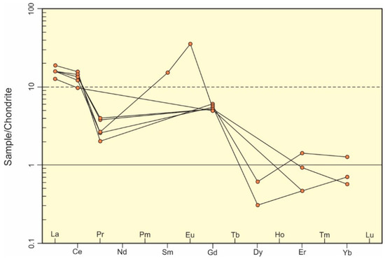 - Boynton, W.V. Geochemistry of the rare earth elements: Meteorite studies. In REE Geochemistry; Henderson, P., Ed.; Elsevier: Amsterdam, The Netherlands, 1984; pp. 63–114. [Google Scholar]