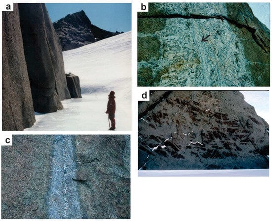 - Engvik, A.K.; Elvevold, S. Late Pan-African fluid infiltration in the Mühlig-Hofmann and Filchnerfjella of central Dronning Maud Land, Antarctica. In Antarctica: Contributions to Global Earth Sciences; Damaske, D., Kleinschmidt, G., Miller, H., Tessensohn, F.., Eds.; Springer: Berlin/Heidelberg, Germany; New York, NY, USA, 2006; pp. 55–62. [Google Scholar]
