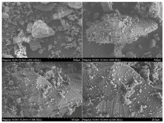 SEM analyses were performed with a JEOL JSM 5600 brand SEM device (JEOL, Tokyo, Japan). In the EDX analysis, X-ray mapping and quantitative elemental analyses were performed in selected areas. A gold/palladium coating device operating under high vacuum was used to prepare samples for the analysis of insulating samples.