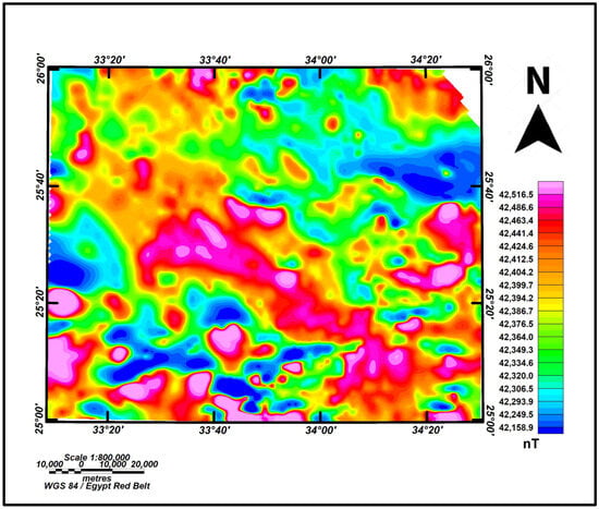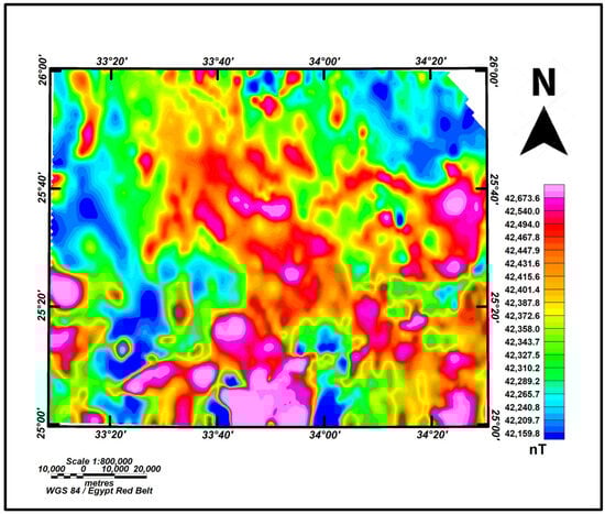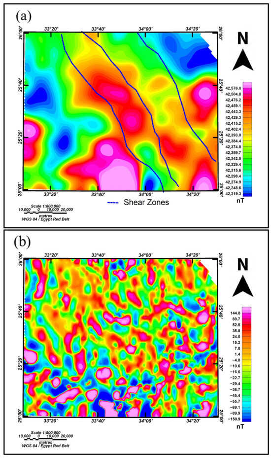 Modern technological advancements have revolutionized gold and thermal exploration in Egypt [,,,]. Cutting-edge tools like aeromagnetic surveys and Landsat-8 imagery not only improve the accuracy of locating gold deposits and thermal reservoirs but also minimize environmental impact. This high-tech approach attracts global mining giants and investors, fostering economic growth, and creating job opportunities within the region.