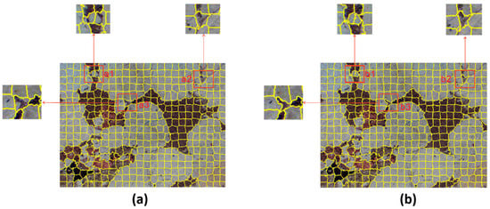 Comparison of segmentation results between SLIC and GL-SLIC algorithms: (a) pre-segmentation result by the SLIC algorithm; (b) pre-segmentation result using the GL-SLIC algorithm.