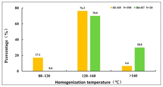 Temperature distribution of inclusions in authigenic quartz of the Huagang Formation sandstone in the Yuquan Structure.