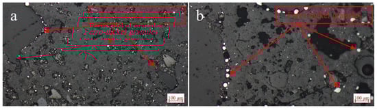 The chemical components of products were analyzed by Atomic Absorption Spectrometer ICE3500 (ThermoScientific, Waltham, MA, USA). X-ray diffraction (XRD) data collection was performed with a Rigaku D/Max−1200 (20 mA, 40 kV; the scanning rate of 10 (°/min) from 3° to 80°, with 0.02° increments). The microscopic photos were observed by electron microscope (ZEISS Axioskop 40, ZEISS, Oberkochen, Germany). The elemental composition of the particular regions was analyzed by scanning electron microscopy, combined with energy-dispersive spectroscopy and electron probe (Shimadzu EPMA-1720, Shimadzu Corporation, Kyoto, Japan). The embedding particle size of the main minerals were analyzed by MLA (FEI MLA650F, FEI Company, Hillsboro, OR, USA).
