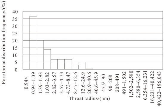 Distribution of the pore throat radius of the Nen 1 shale in the Yaonan 5 well of the Changling Sag, Songliao Basin.