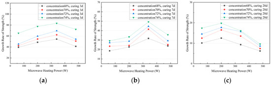 3.2.1. The Effect of Microwave Heating Power on the UCS Growth Rate of CTB at Different Concentrations