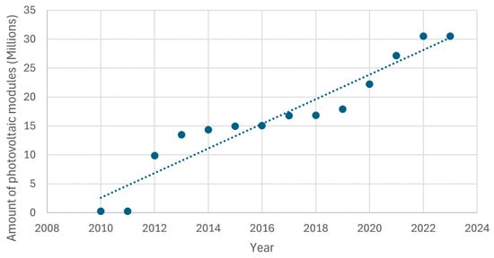 15], so eventually, the PV panels currently in use will be replaced, generating waste. The International Renewable Energy Agency (IRENA) estimated that by the end of 2030, there will be about 8 million tons of PV panel waste and 78 million tons by 2050 [