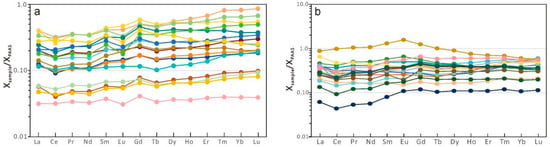 - Michard, A. Rare earth element systematics in hydrothermal fluids. Geochim. Cosmochim. Acta 1989, 53, 745–750. [Google Scholar] [CrossRef]