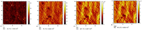 The surface elemental composition and spatial distribution of the samples were characterized using Time-of-Flight Secondary Ion Mass Spectrometry (TOF-SIMS, model TOF.SIMS 5-100, IONTOF, Münster, Germany), which offers high surface sensitivity ranging from ppm to ppb levels. The specific parameters were as follows: a primary ion beam of Bi3++ at 30 keV with a 45° incidence angle, scanning an area of 100 μm × 100 μm; positive secondary ions were collected within a mass range of 0–900 amu. A Gas Cluster Ion Beam (GCIB) at 10 keV with a 45° incidence angle was used for sputtering, with a sputtering rate of approximately 0.15 nm/s.