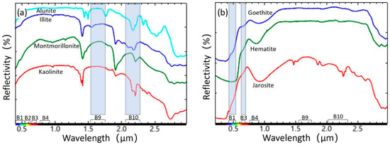 - Honarmand, M.; Ranjbar, H.; Shahriari, H.; Naseri, F. Evaluating the effect of using different reference spectra on SAM classification results: An implication for hydrothermal alteration mapping. J. Min. Environ. 2018, 9, 981–997. [Google Scholar]
