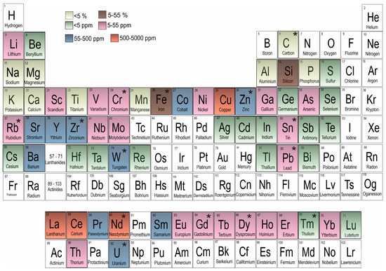 Increased demand brought about by their manifold applications in green technologies and defense applications, coupled with concerns about potential supply disruption, has led to certain commodities being defined as “critical” or “strategic” [1]. Lists of critical and/or strategic minerals and/or elements differ subtly between jurisdictions (e.g., the European Union, United States of America, United Kingdom, Australia, Japan, etc.) and continue to evolve, reflecting demand, availability, emerging uses, supply bottlenecks, and overarching geopolitical concerns. All critical mineral inventories include minor and rare metals, selected non-metals, minerals sensu stricto such as graphite and barite, as well as other non-metal commodities like potash [2,3,4,5,6].