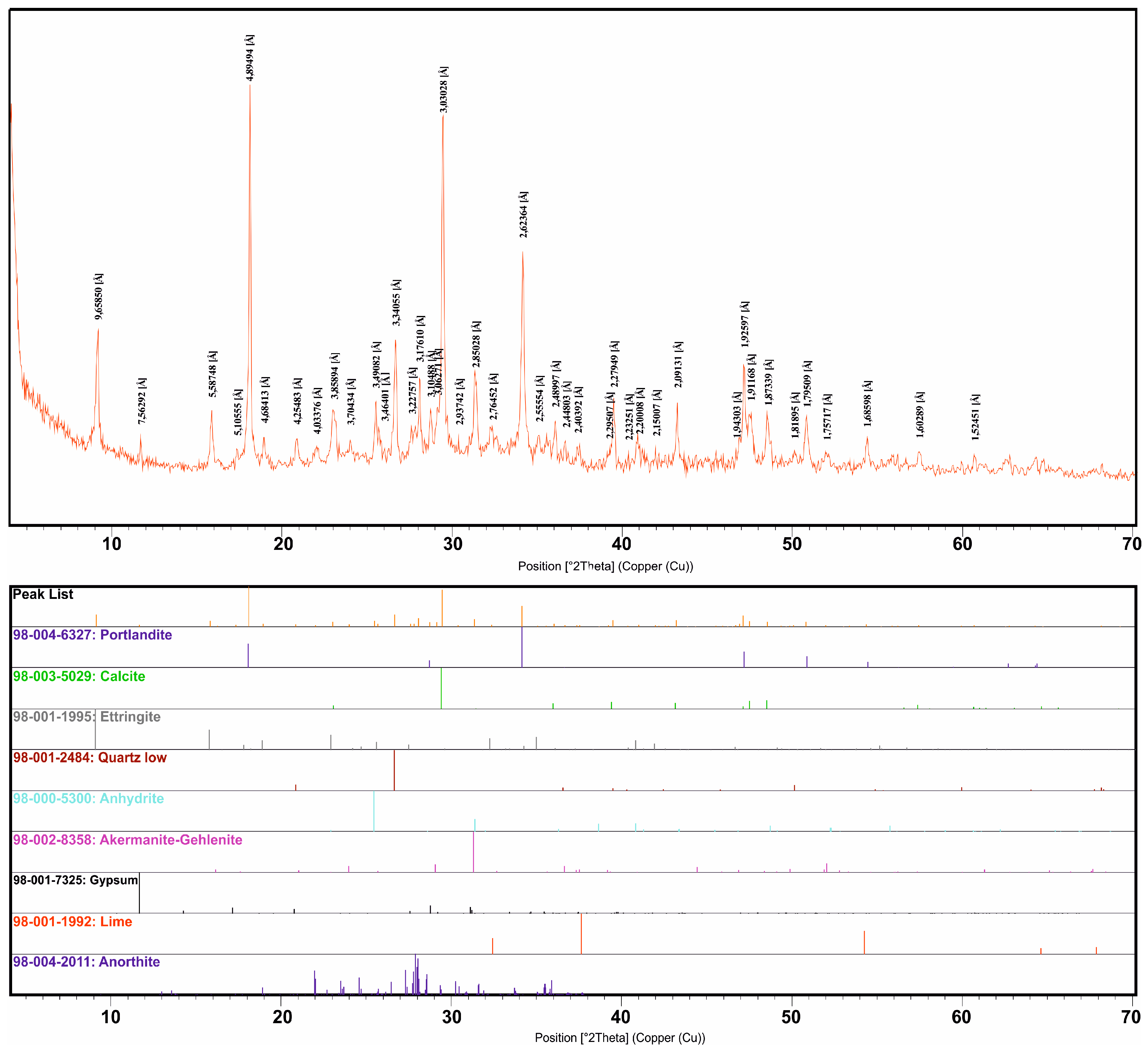 Ettringite | + | + | + | + | + | + | + | + | + | + | + | + | + | + | + |
