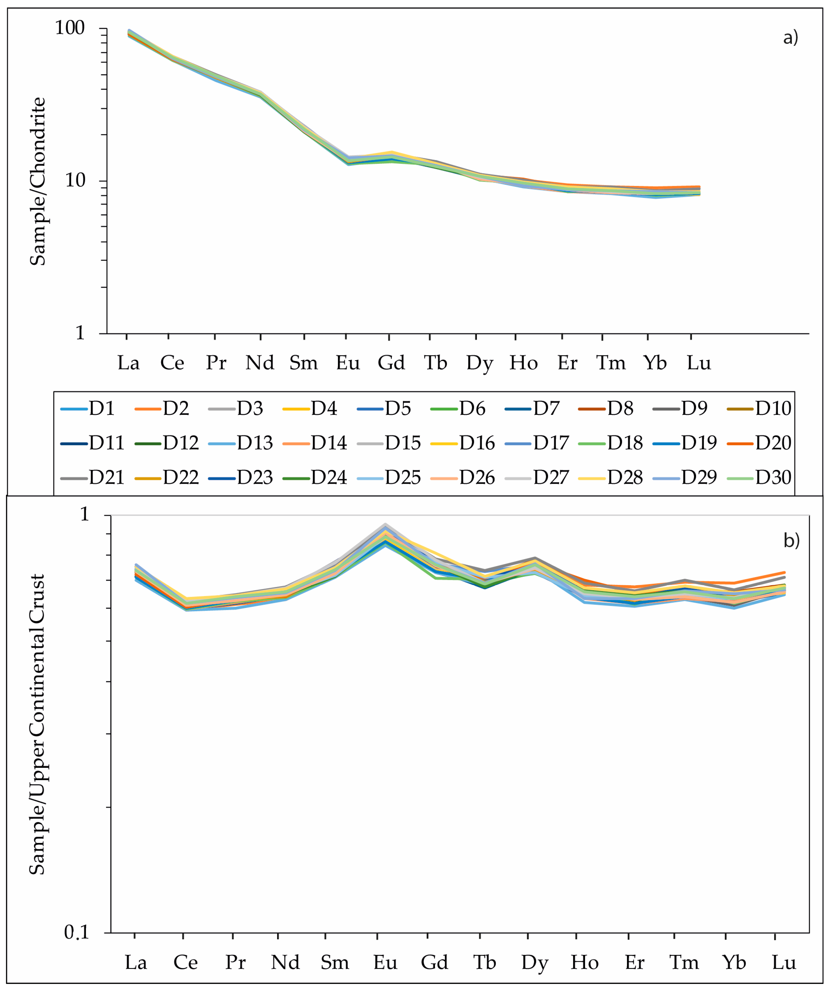 5.2. Geochemical Distribution of REEs