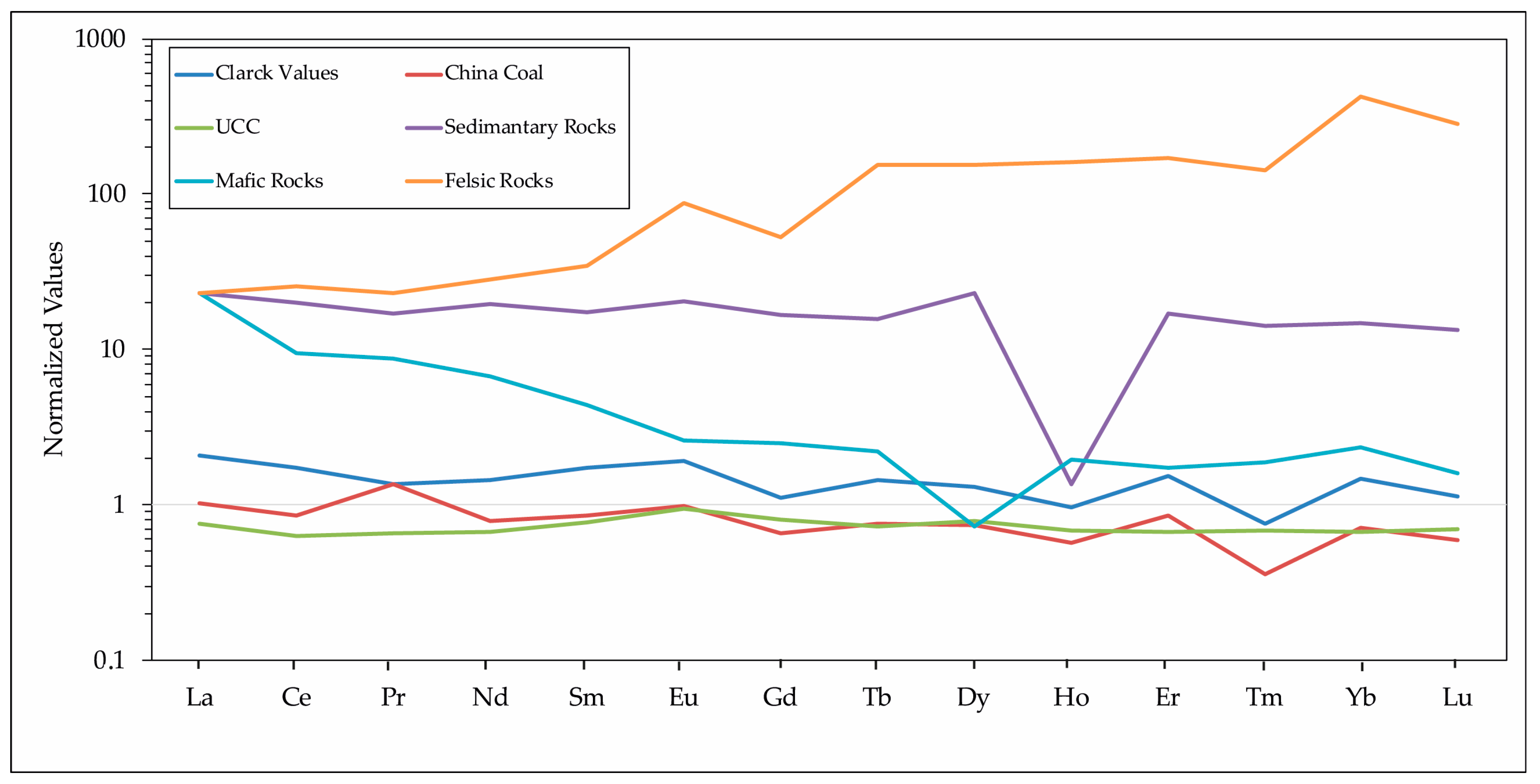 - Wen, L.; Huang, W.; Zhang, Y.; Jiu, B. Geochemical characteristics of rare earth elements in late Palaeozoic coals from North China. Front. Earth Sci. 2024, 12, 1374780. [Google Scholar] [CrossRef]